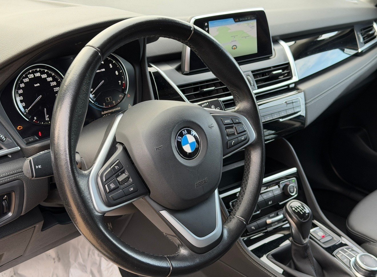 Well-maintained 2018 BMW 218i Active Tourer Sportline in an attractive blue color. The vehicle is equipped with leather interior, M Sport seats, M steering wheel, and a reversing camera – for sporty comfort, elegant appearance, and increased safety when parking. Regularly serviced, accident-free, and in perfect technical condition.